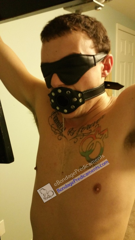 With that, I grabbed an open-mouth gag and strapped it on him, locking it behind him. When he heard the ‘click’ of the padlock, he knew he was going to be gagged for a while. Gagged, and soon to be drooling, a nice side effect of the open-mouth gag.