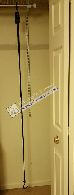 - Hook or clip your sub's tied/cuffed hands to the ratchet strap hook hanging down behind him.